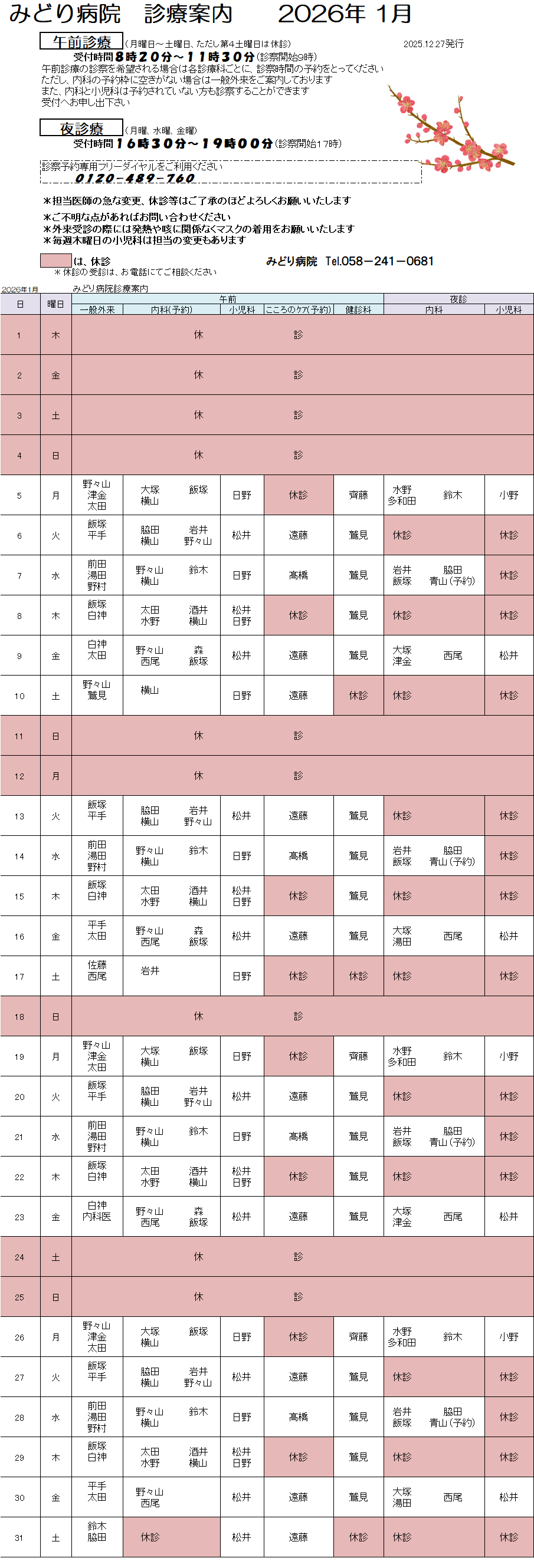 最新の診療体制を表示しています 過去分も下にあります