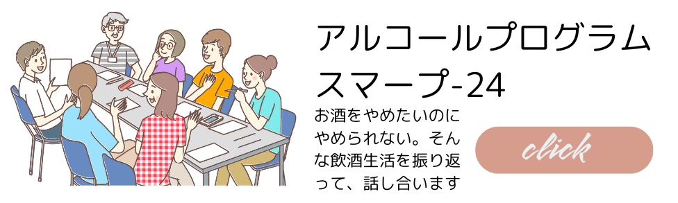 アルコール問題でお悩みの方を対象に月2回SMARPP-24テキストを使ったグループログラムを行っています。また、ご家族からのアルコール相談にも応じています。